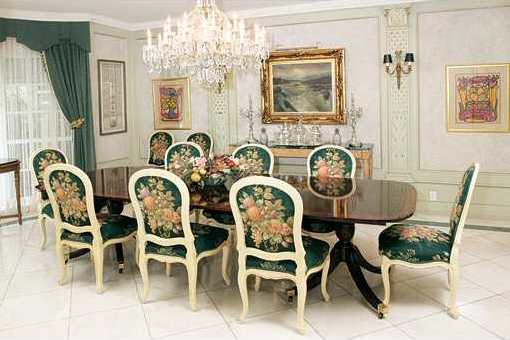 Ein herrschaftlicher Eingang mit großem Flur führt direkt in die große Küche und das Wohnzimmer, in welchem sich riesige französische Fenster befinden, die für einen atemberaubenden Panoramablick auf die Gartenanlage sorgen.